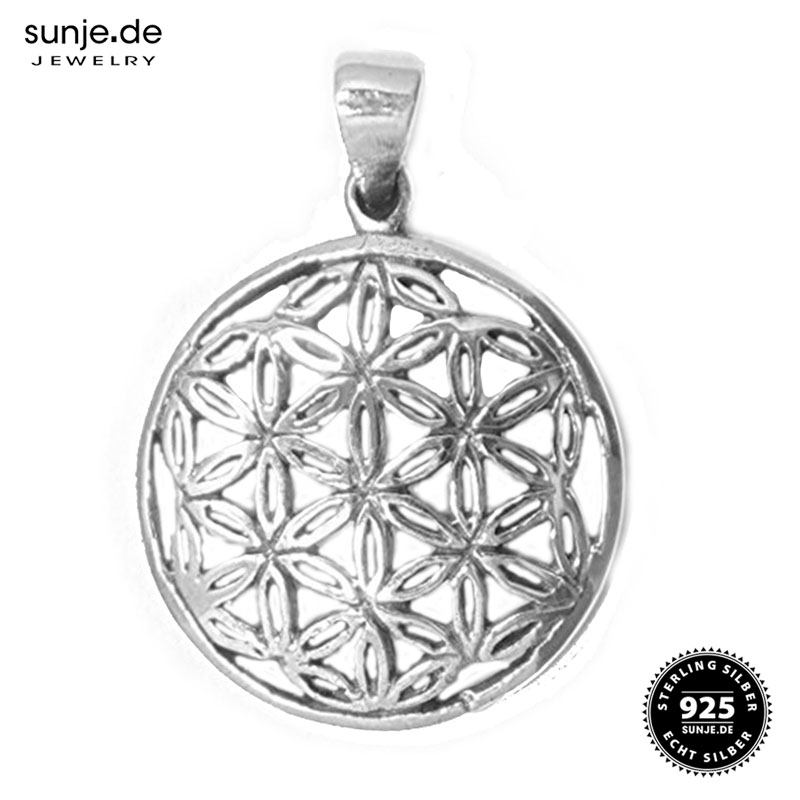 Lebensblume Ornamentrand Anhänger mit Kette 925er Sterling Silber
