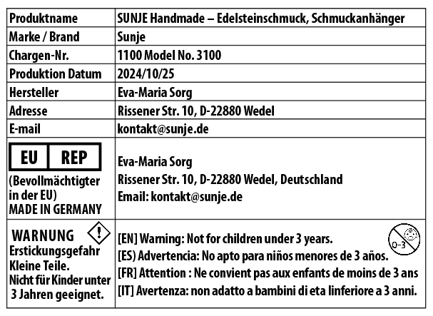 • Vorsicht vor scharfen Kanten. Das Mineral kann scharfe Kanten aufweisen. Vorsichtig handhaben.